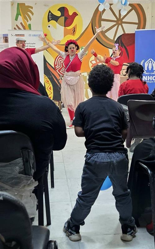 The first week focused on activities with UNHCR Egypt, engaging both children and adults—primarily from Sudan. Using humour and play as psychosocial tools, the team created moments of connection, relief and emotional regulation in contexts often dominated by uncertainty and stress.