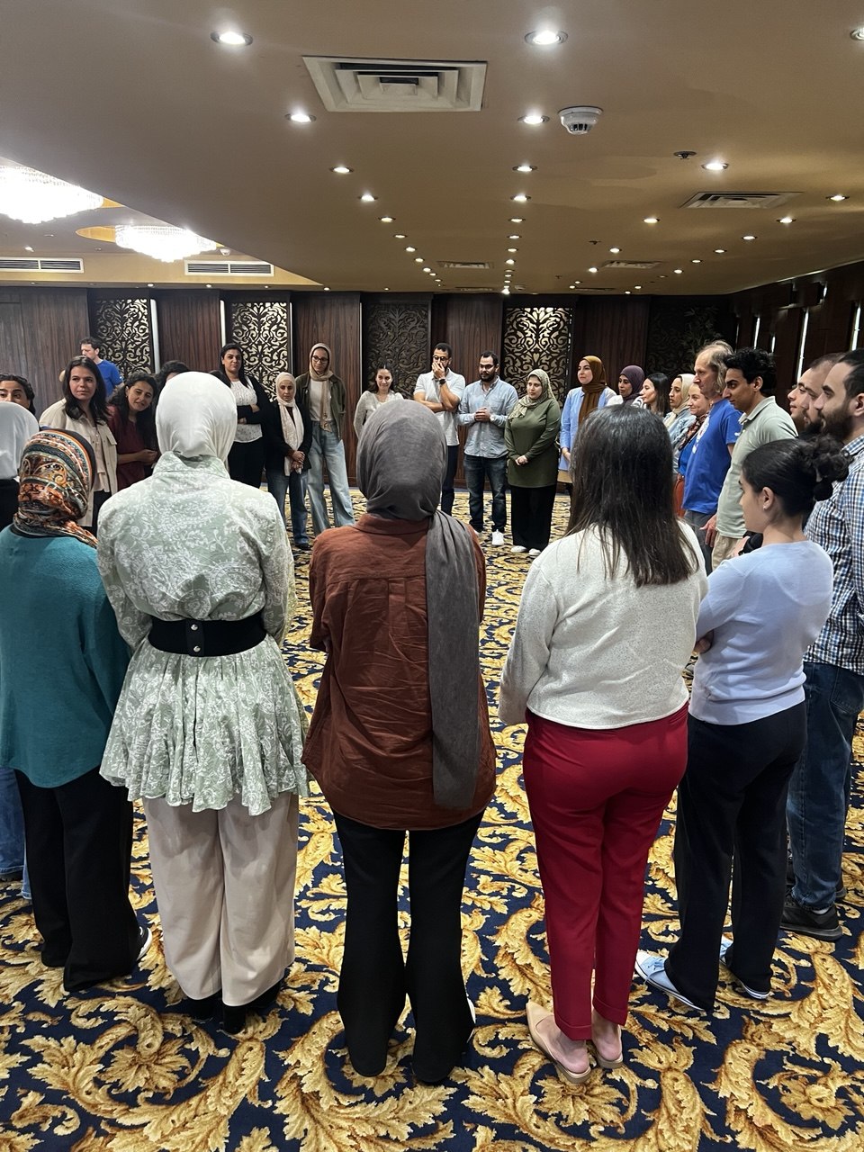 Emergency Smile Humour Relief Workshop with Refugee Egypt staff, Hula Hoop Circle