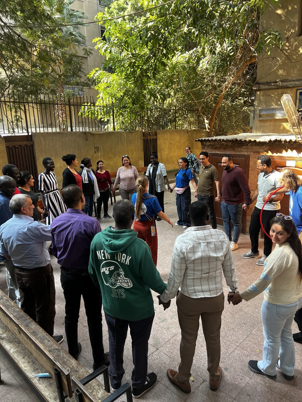 Emergency Smile Humour Relief Workshop with Refugee Egypt staff, Trust Exercise