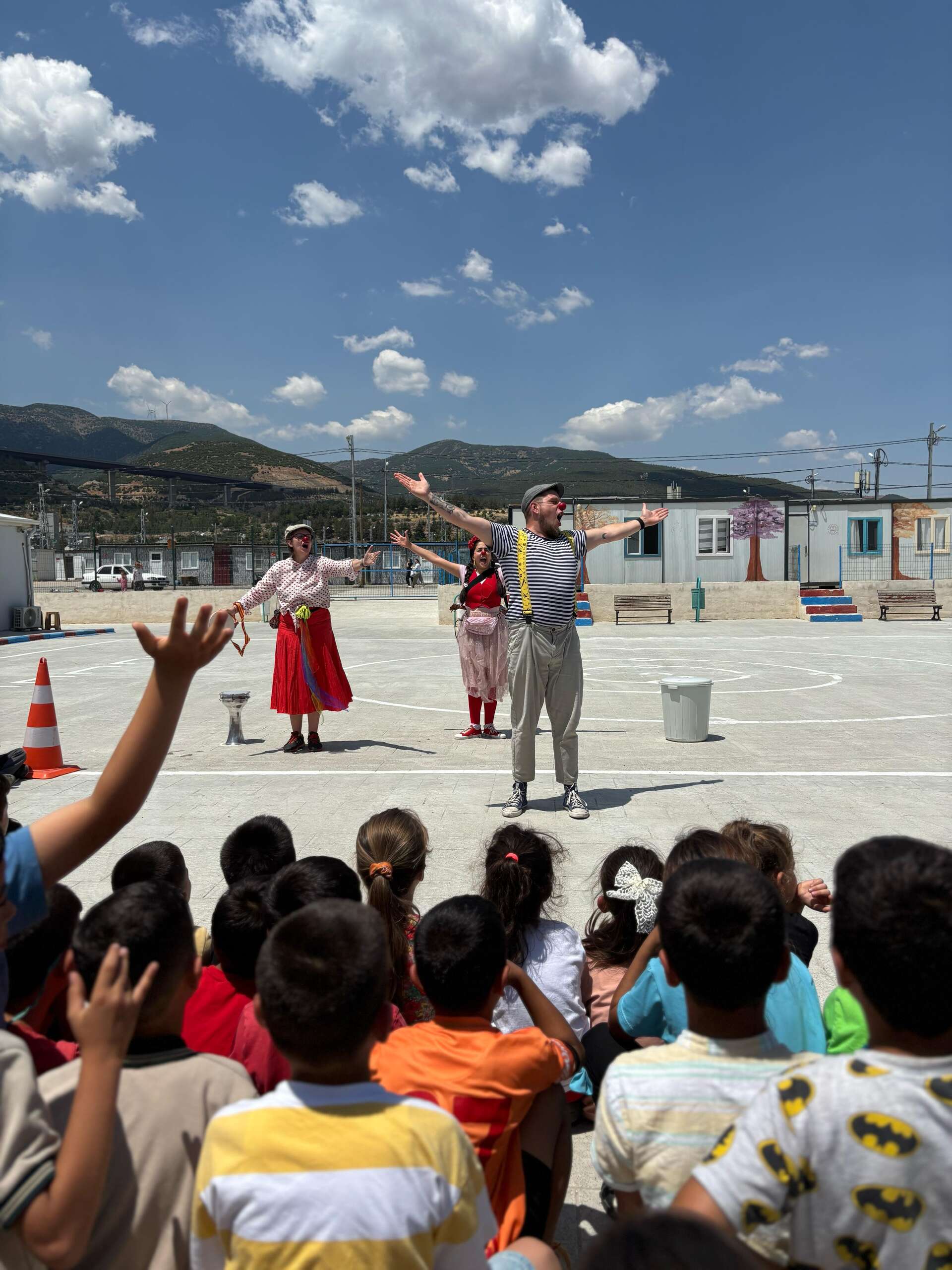 During the second mission, one moment illustrated this need clearly. A child approached one of the clown artists, Nina, and said, ‘Please make us laugh a lot today.’ The request reflected a desire for relief within a context of prolonged strain. Performances were delivered in both Turkish and Arabic, ensuring accessibility and enabling all children to participate fully.
