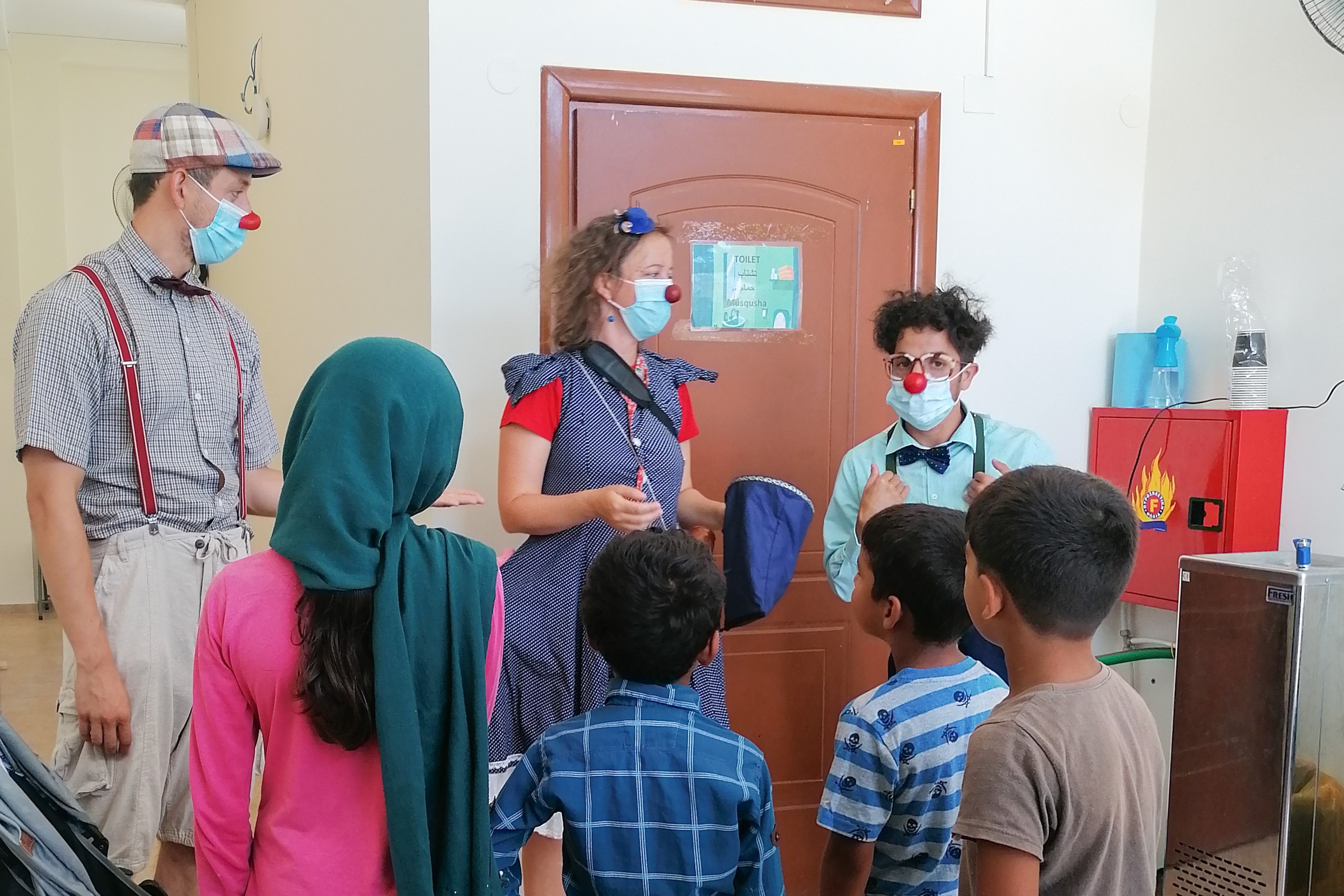 “The clowns assisted me at the clinic as I vaccinated children from Moria 2.0. They distracted each kid in a gentle and playful way, so I could focus more on my work. I noticed that the kids where much calmer and relaxed during the vaccination itself. It seems that the kids felt less pain as their arm muscles were relaxed. The work of the clowns was very helpful" - Carola Liebe-Harkort, nurse at the MSF clinic in Lesbos.