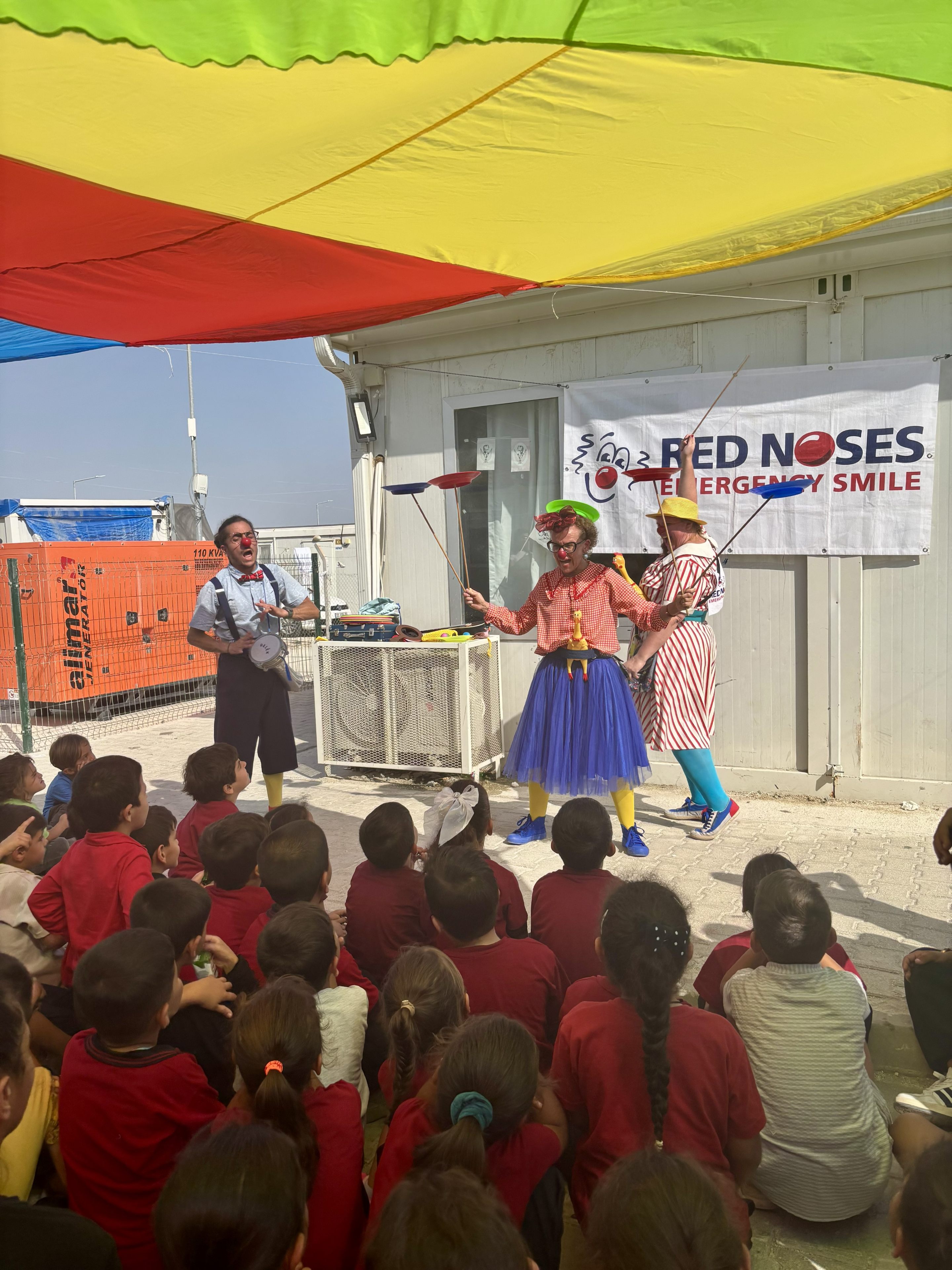 In Hatay, particularly in the city of Antakya, the team witnessed the long-lasting effects of the earthquake. Even more than two years later, many families still live in container camps, while parts of the city remain in ruins or under reconstruction. The team visited schools, kindergartens and camps, many of which had never seen clowns before.